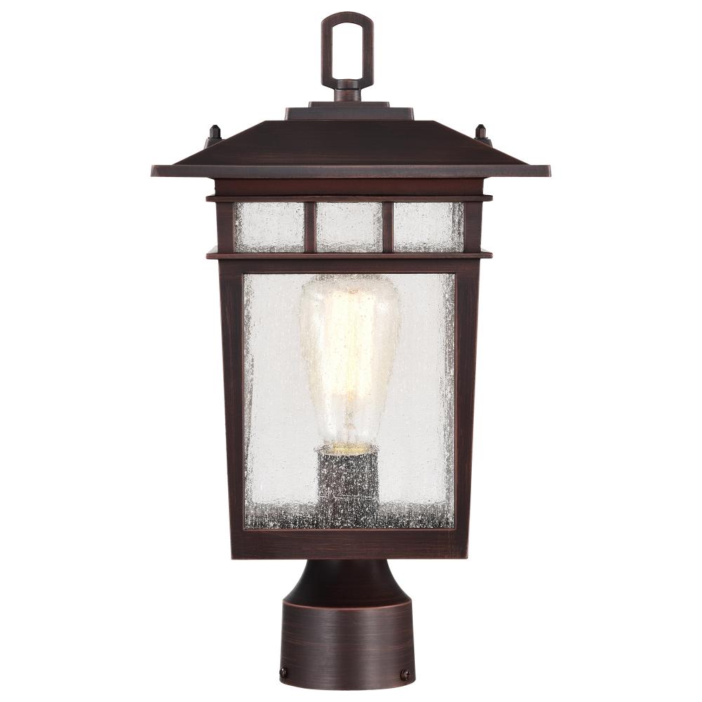 Cove Neck Collection Outdoor Large 16 inch Post Light Pole Lantern; Rustic Bronze Finish with Clear Seeded Glass