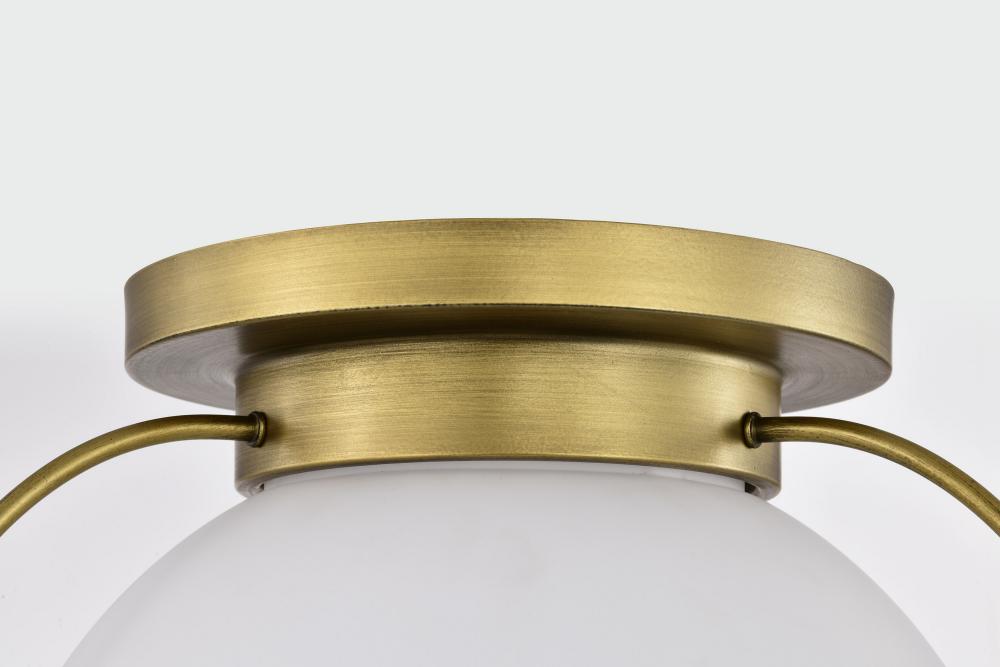 Lakeshore 1 Light Large Flush; Natural Brass Finish; White Opal Glass