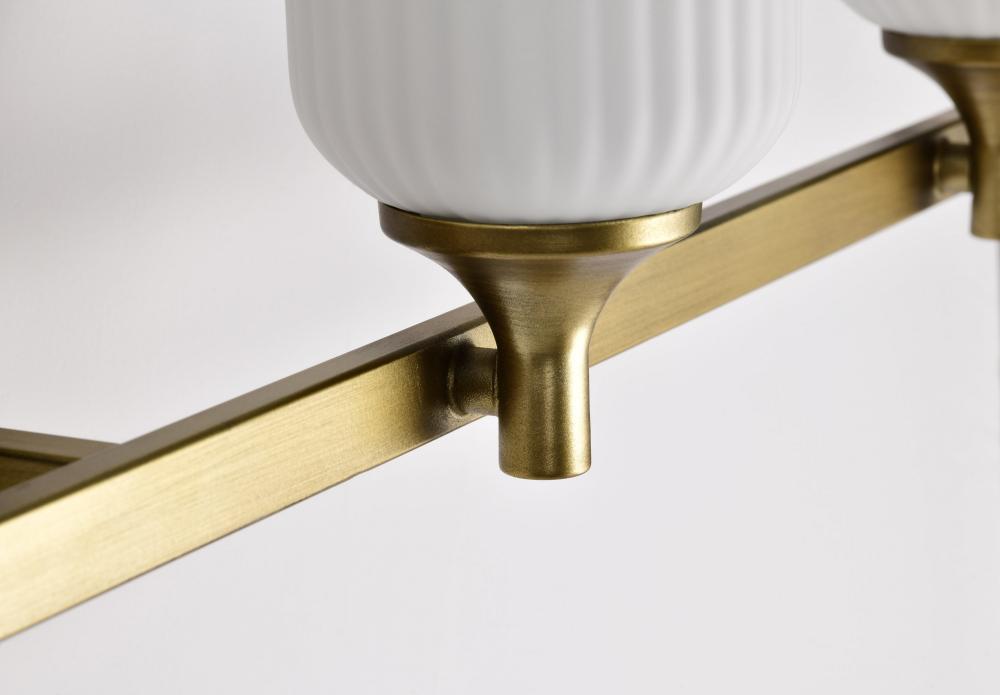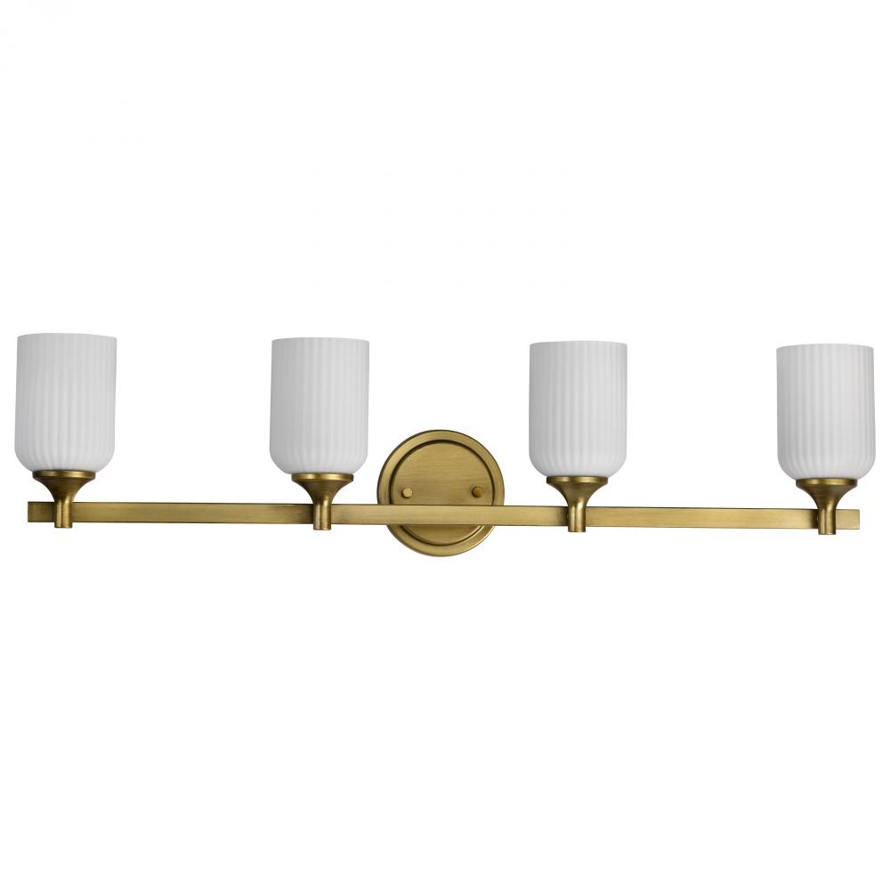 Solara; 4 Light Vanity; Natural Brass Finish; Frosted Ribbed Glass