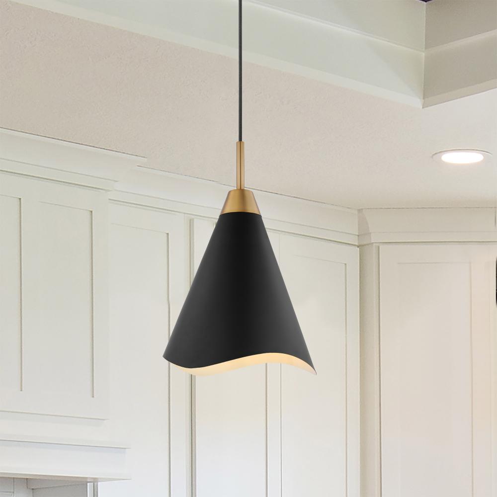 Tango; 1 Light; Medium Pendant; Matte Black with Burnished Brass