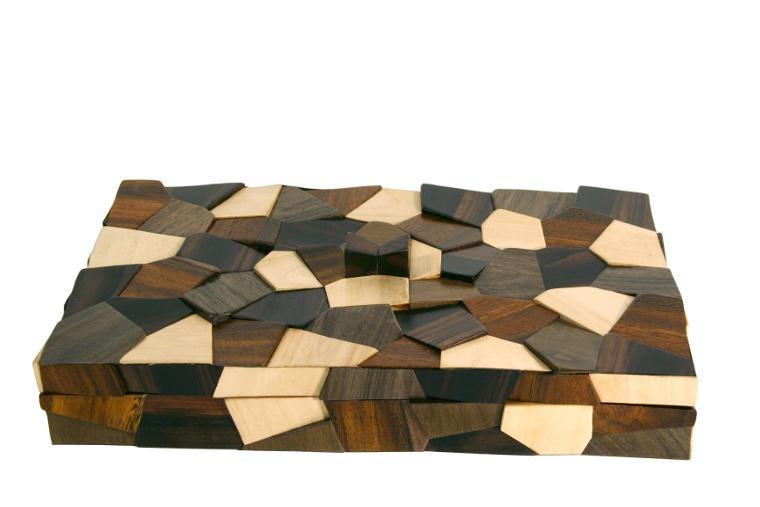 Different species of wood are cut into random shapes to create a three-dimensional pattern. Made in the Philippines.