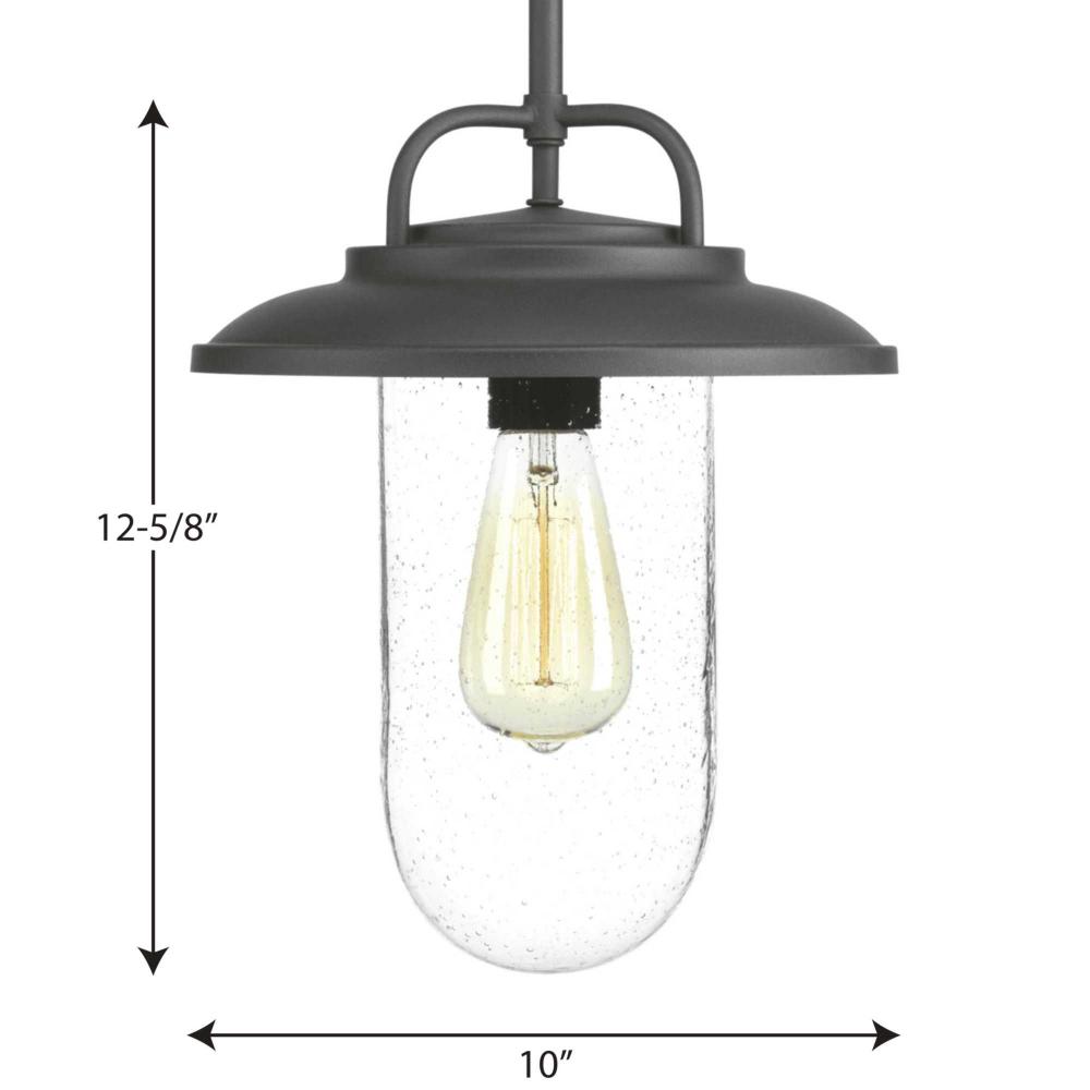 Beaufort draws its design from both industrial and nautical influences. A clear seeded glass diffuser works well with either traditional or vintage style lights. One-Light hanging lantern. Black finish.