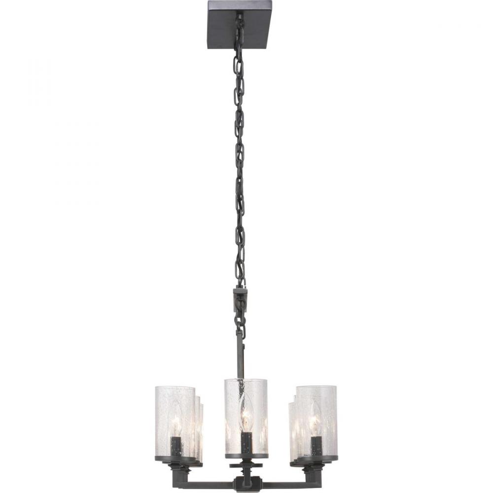 Gresham Collection Eight-Light Graphite Clear Seeded Glass Farmhouse Chandelier Light