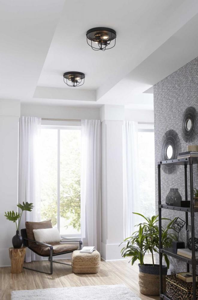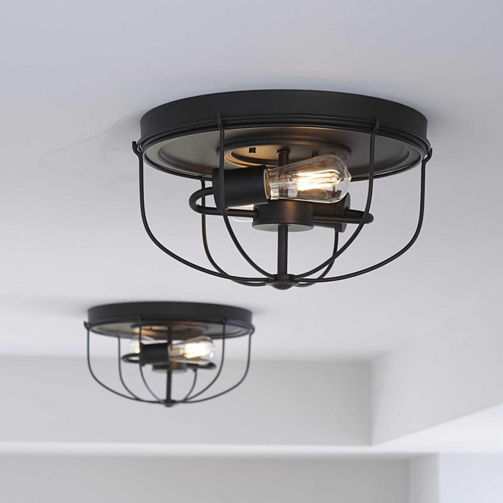 Application: Inspired by vintage automobile engines the Medal Collection 2-Light Graphite Industrial Flush Mount Ceiling Light is ideal for any hallway, stairwell, entryway, kitchen, or sitting room.;Styles: Perfect for coastal, farmhouse, and urban indust