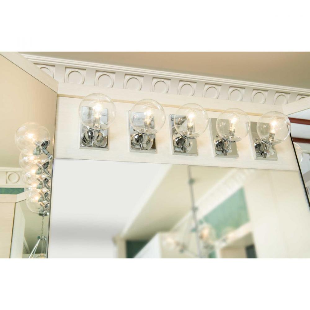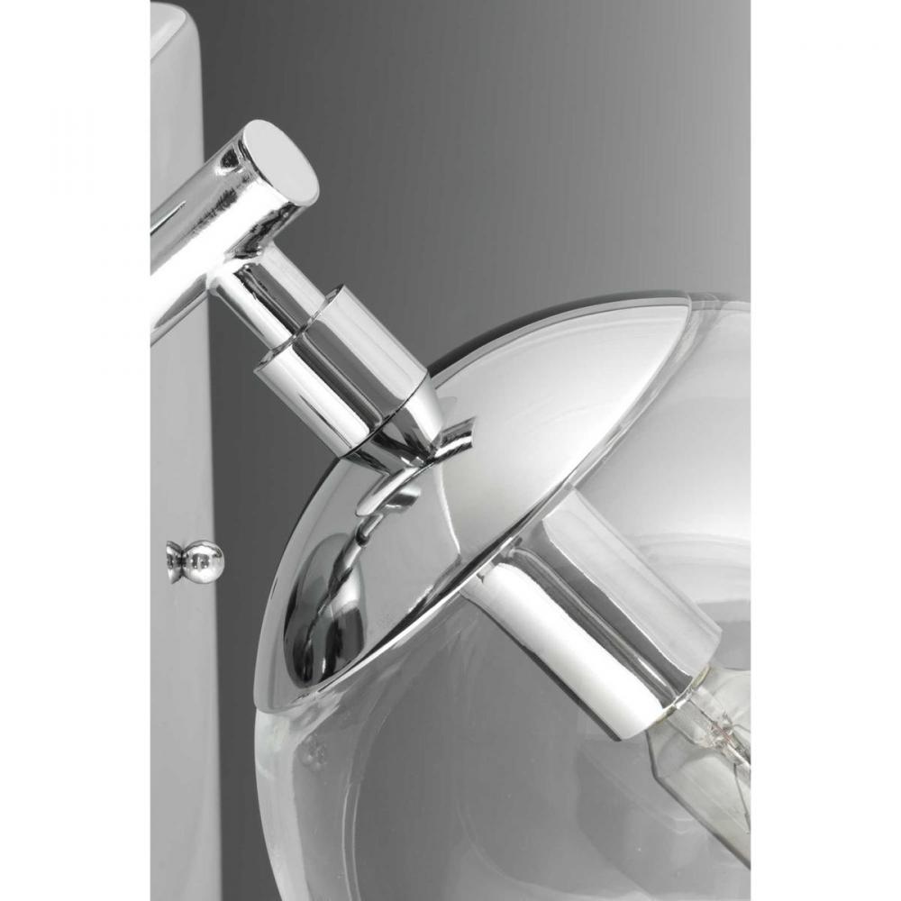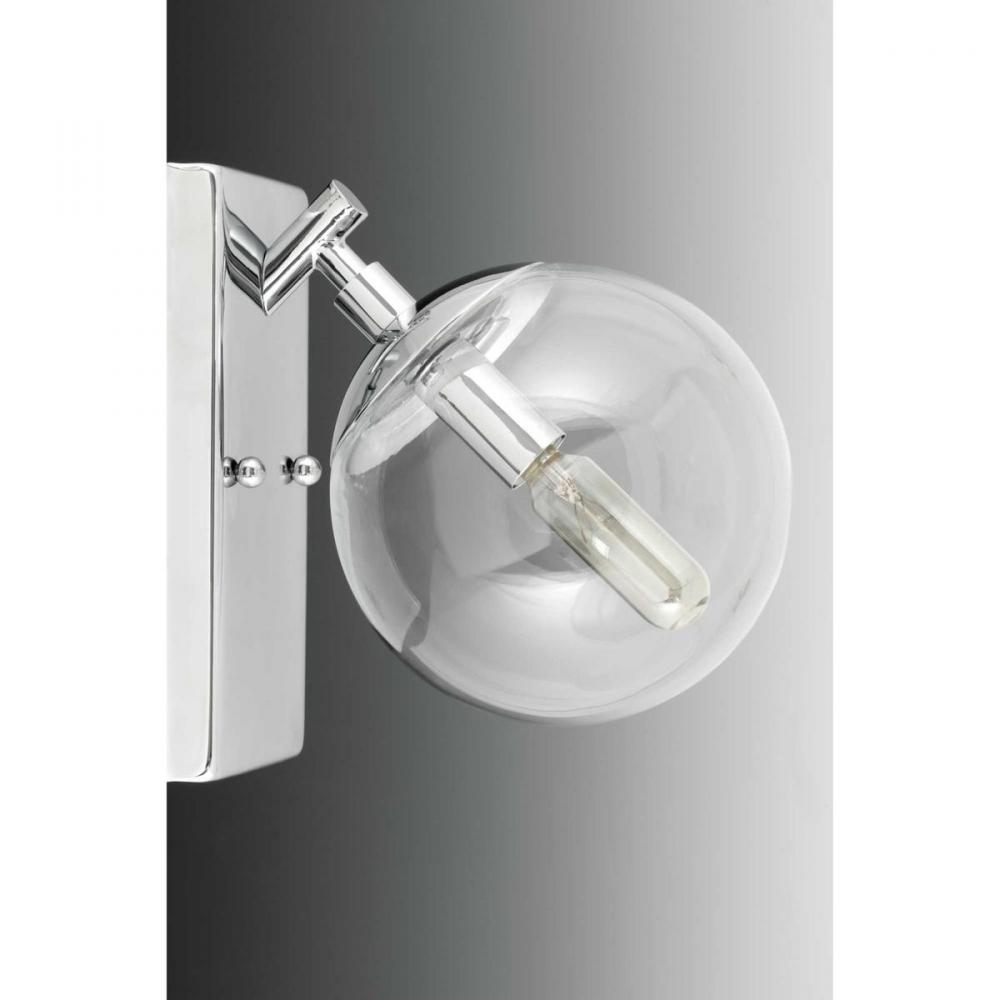 Giving a nod to the space age with mid-century modern appeal, Mod features a sleek linear frame in a Polished Chrome finish. Clear, spherical glass shades offer the perfect focal point for vintage bulbs or reflector-style globes. This one-light fixture can be used in the bath and vanity or as a complimentary wall sconce.