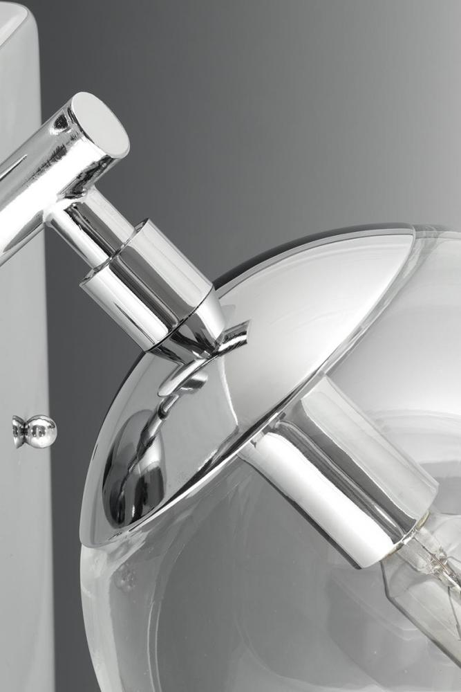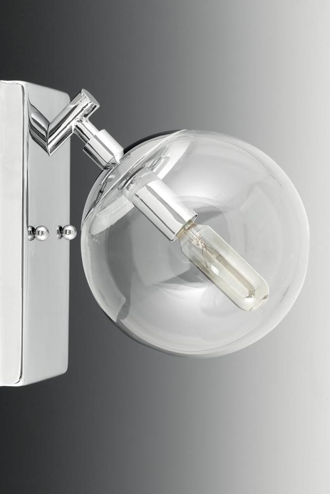 Gives a nod to the space age with mid-century modern appeal.;Features a sleek linear frame in a Polished Chrome finish.;Clear, spherical glass shades offer the perfect focal point for vintage bulbs or reflector-style globes.;Includes one 6", four 12