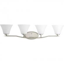 Four-light bath finished in Antique Bronze with etched glass shades scaled across a slightly arching, pointed arm. Generously balanced glass shades add distinction and provide pleasing illumination to your room. Coordinating fixtures from this collection let you decorate an entire home with confidence and style.