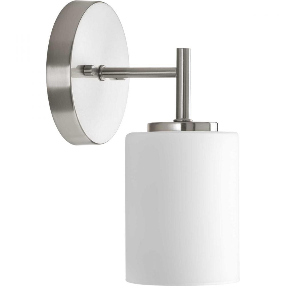 One-light bath & vanity from the Replay Collection, smooth forms, linear details and a pleasingly elegant frame enhance a simplified modern look. Fixture can be mounted up or down. Brushed Nickel finish.
