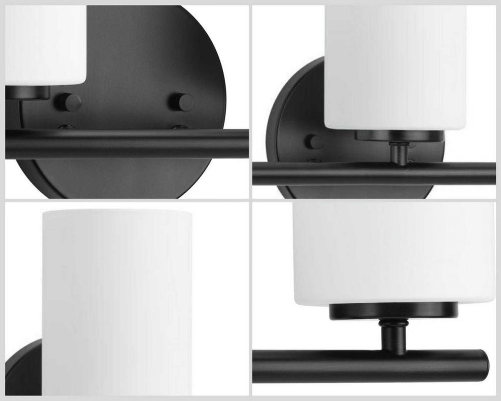 Ideal for a bathroom and powder room.;Perfect for modern and transitional style settings;Classic textured black finish;Elegant etched glass shades;Mount the light fixture facing up or down;Use 2 medium base bulbs that are sold separately (100 W max - LED/C