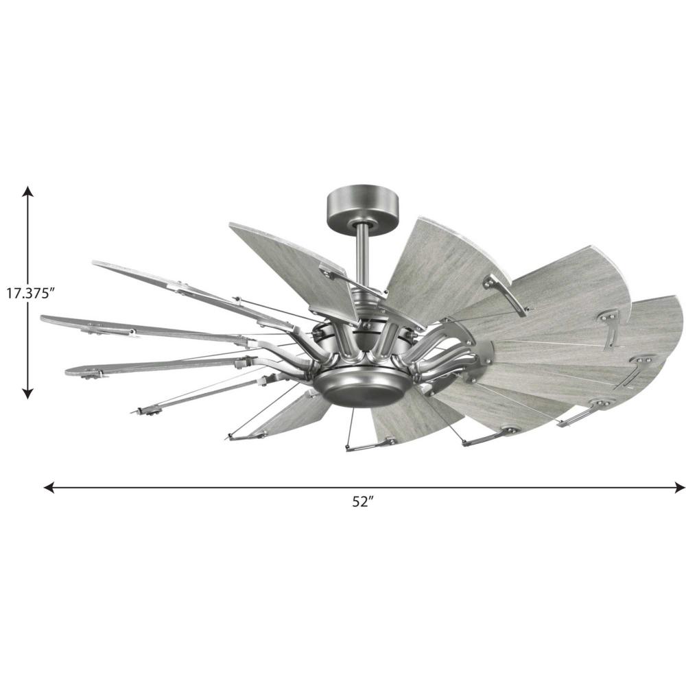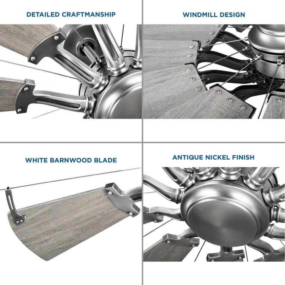 Relax under the refreshing breeze of the Springer Collection 52-Inch 12-Blade White Barnwood DC Motor Farmhouse Windmill Ceiling Fan ideal for any great room, bedroom, living room, or bonus room. Perfect for farmhouse, rustic, and coastal style settings. Ideal for boosting airflow in smaller spaces. 12 sweeping blades are coated in a white barnwood finish for rustic flair.