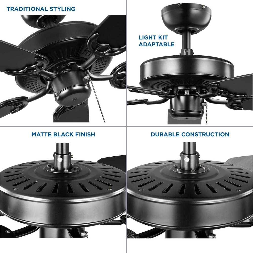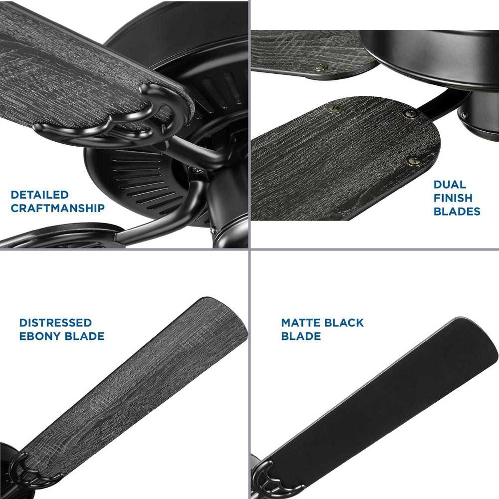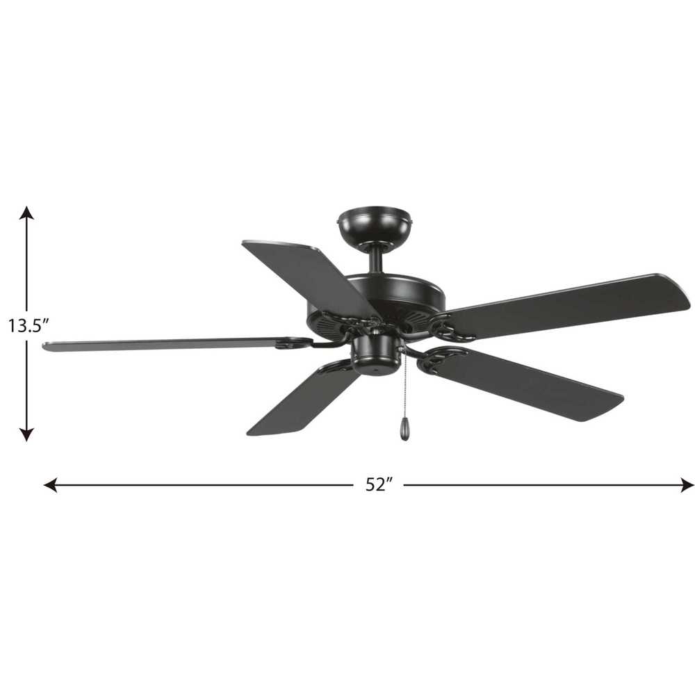 Enjoy the beautiful expansive design of the AirPro Collection 52-Inch 5-Blade Matte Black/Distressed Ebony AC Motor Traditional Ceiling Fan ideal for any great room, bedroom, living room, or bonus room. Perfect for traditional and transitional style settings. 5 reversible blades are coated in matte black and distressed ebony finishes for extra design versatility.