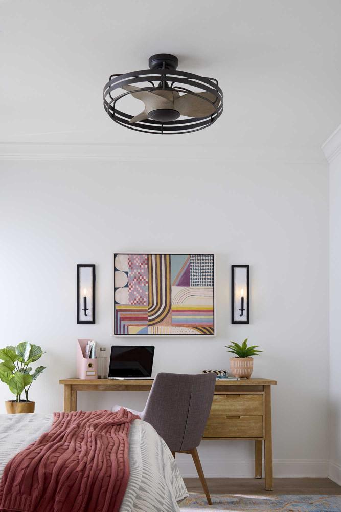 Cage-style fan is ideal for living rooms, bedrooms, dens, offices, patios, and porches