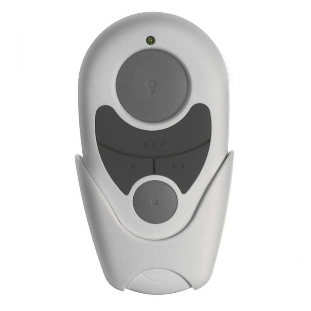 Includes 3 speed handheld remote control with battery and wall bracket.