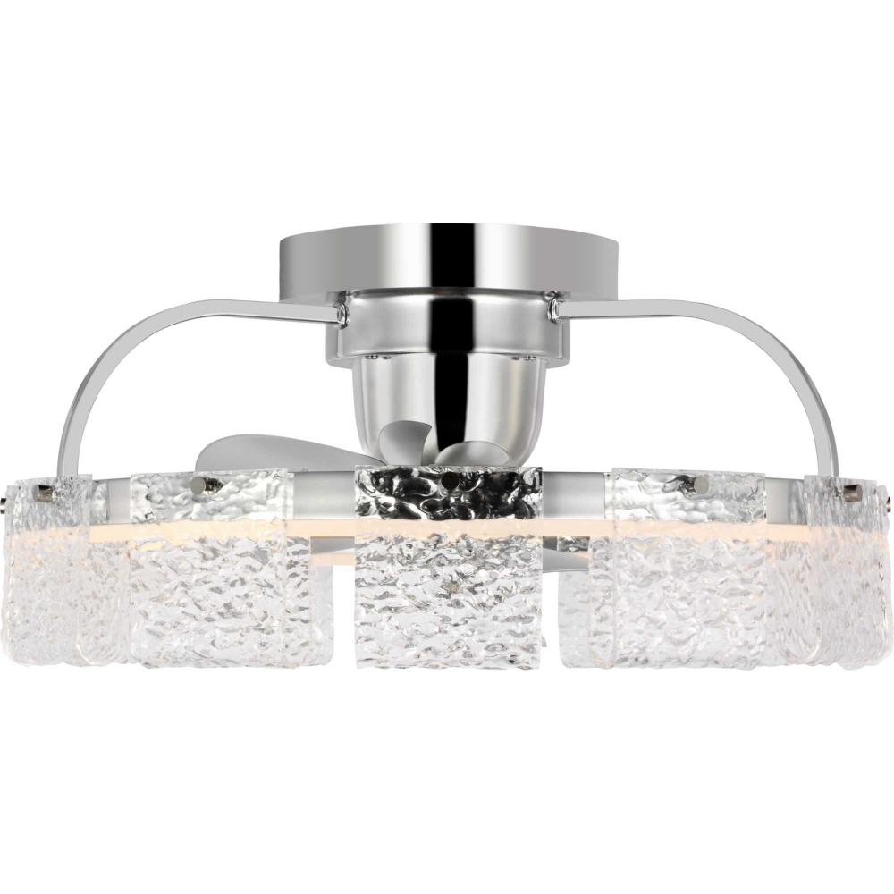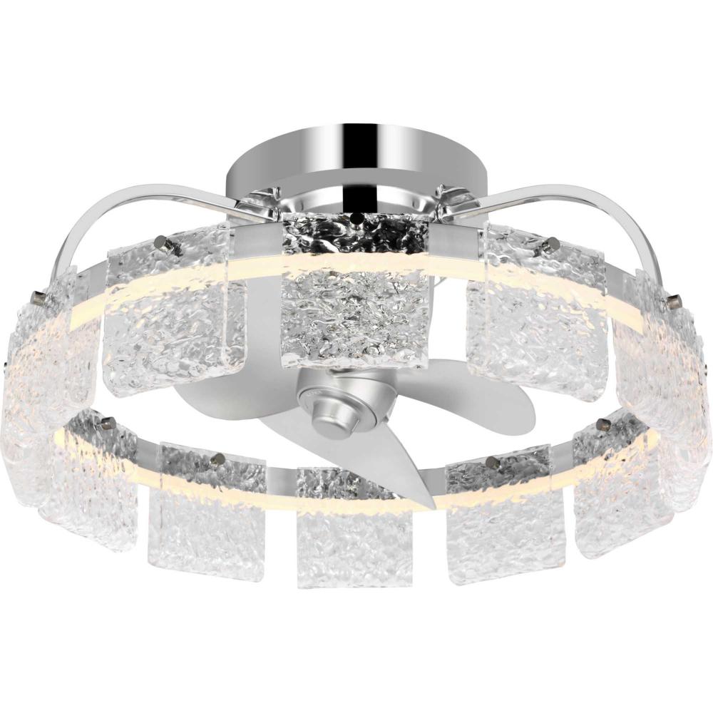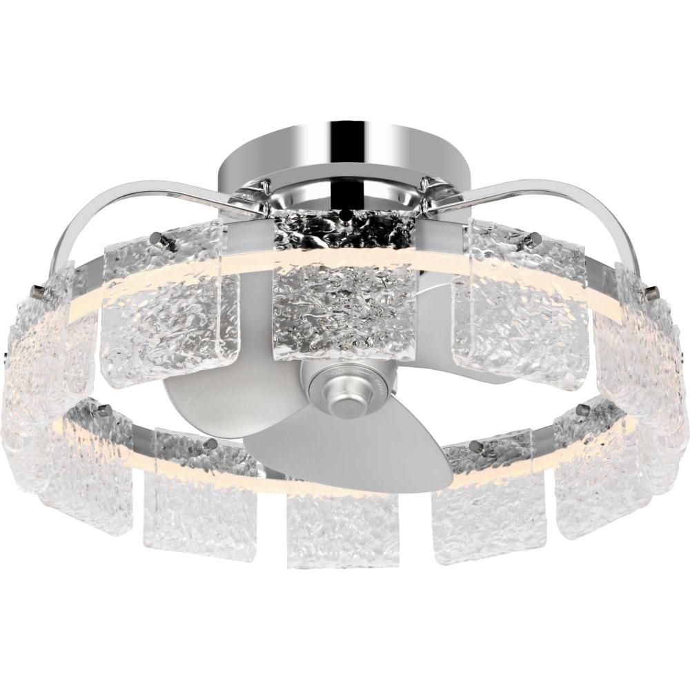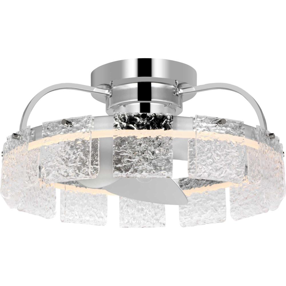 Artisanal pressed glass and a Polished Chrome finish reflect the light from integrated, dimmable edge-lit LEDs