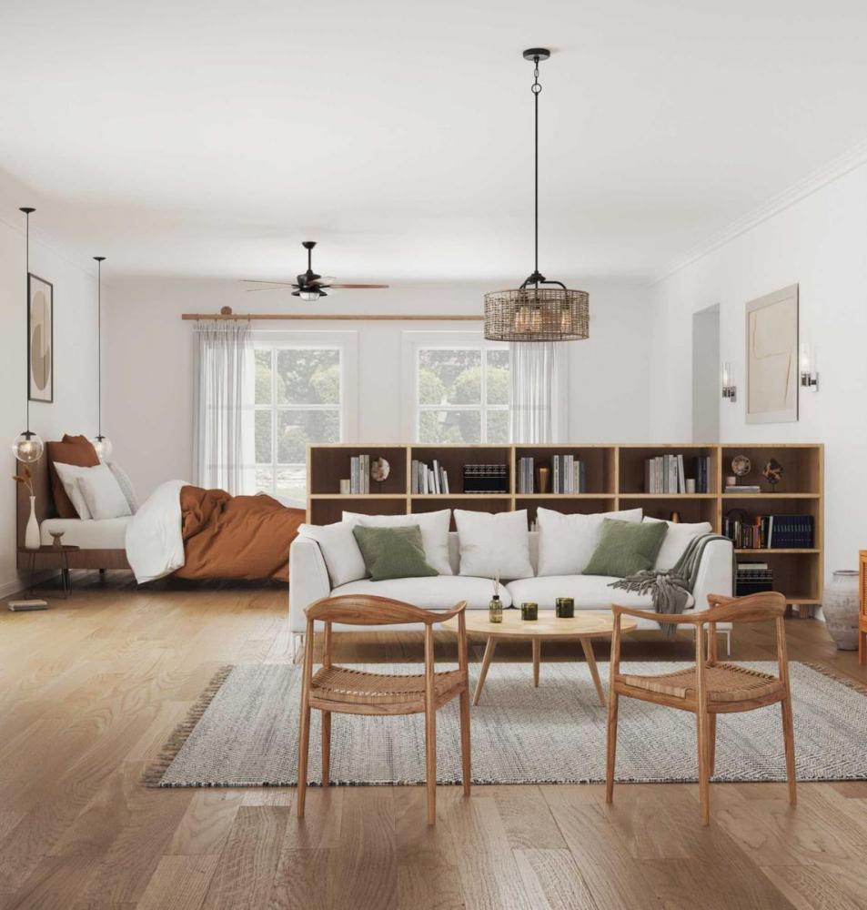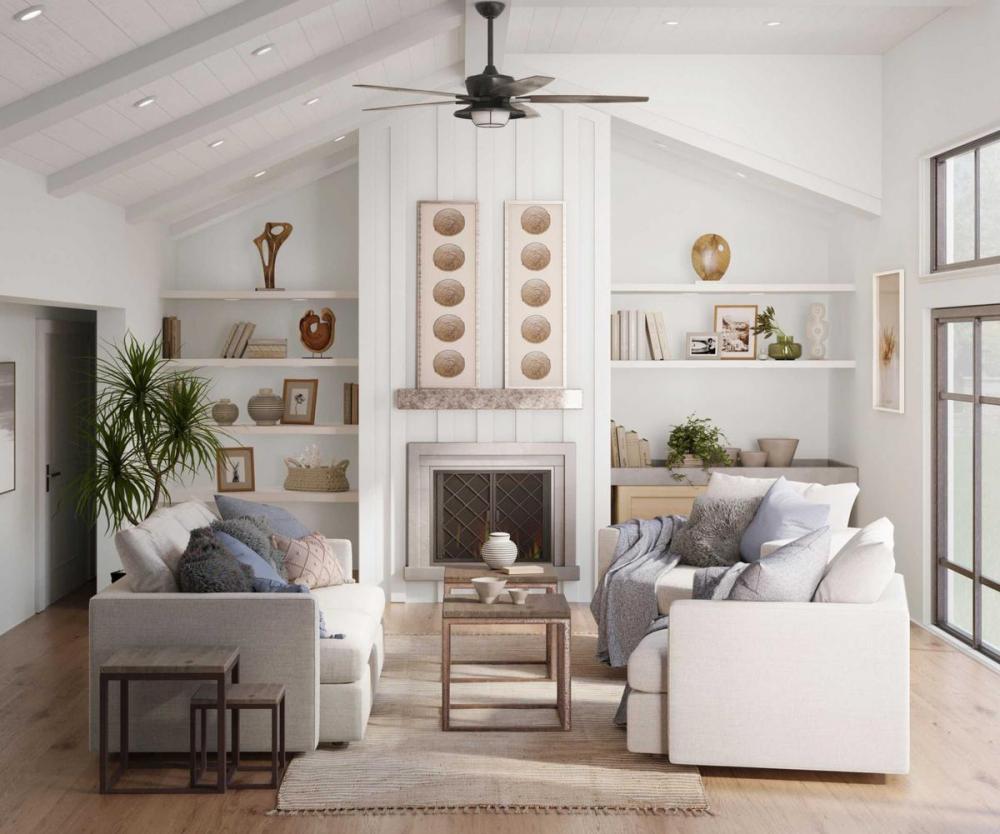 60" Montague indoor/outdoor ceiling fan features a spacious design with five blades;The white opal glass shade contains a 18W dimmable, 3000K LED module, 90+ CRI and 1400 lumens (source) - offering both form and function with energy- and cost-savings b