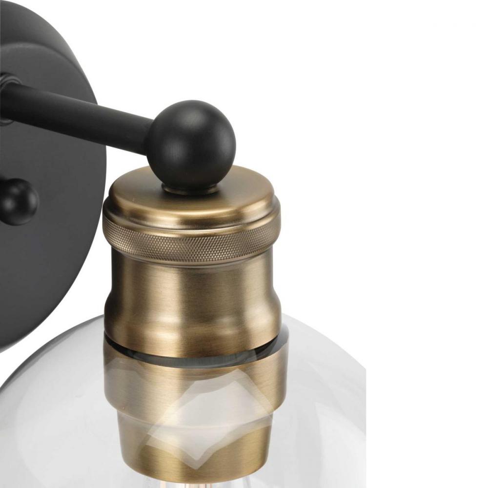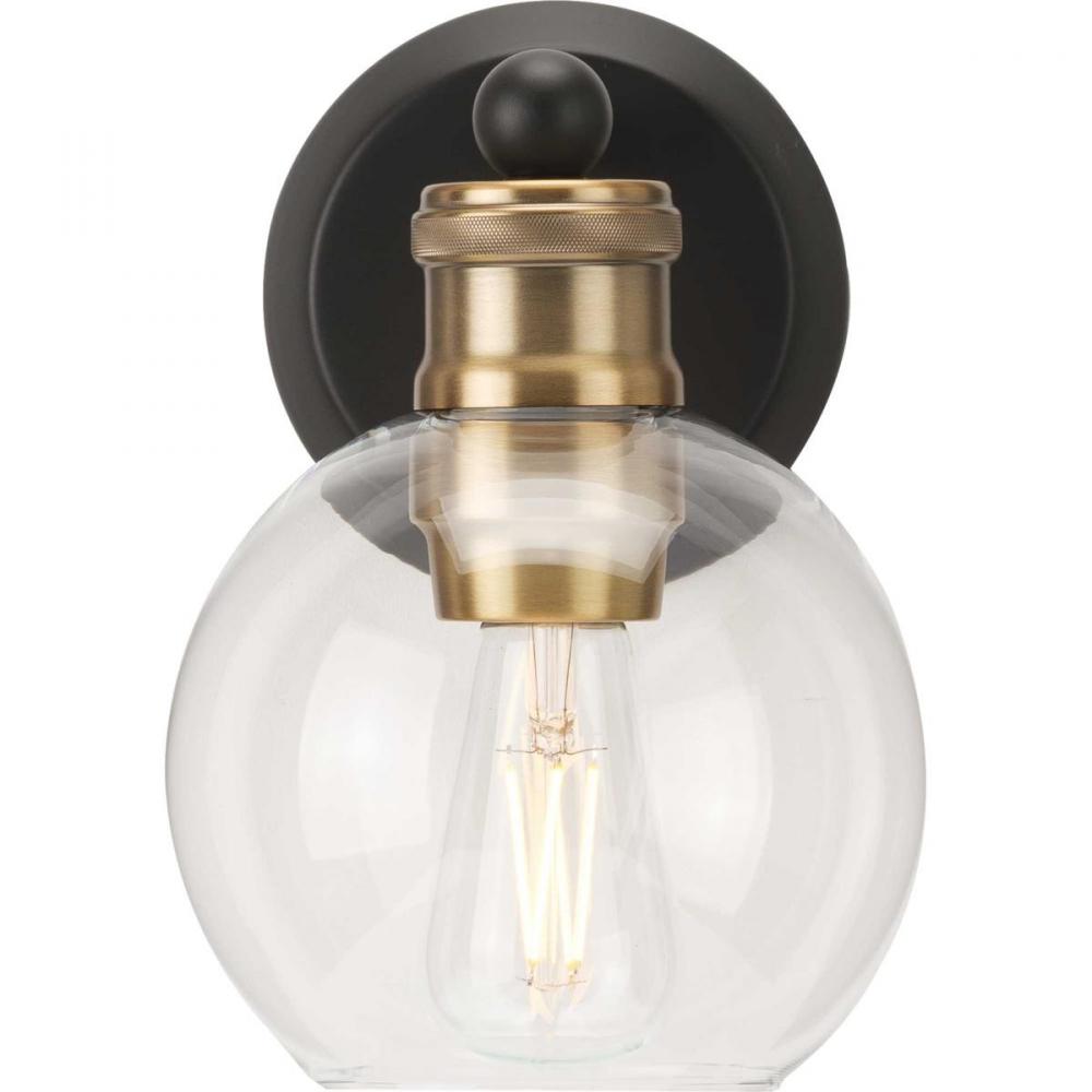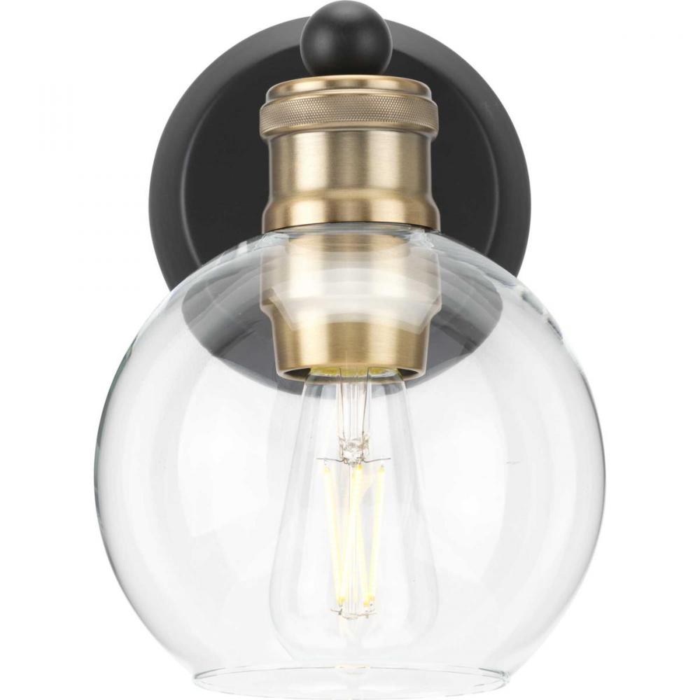 The Hansford collection of fixtures feature a clear, spherical shade paired with vintage style metal fittings in an Antique Bronze and Vintage Brass combination finish. Featuring a clean and precise design with generous scale, Hansford's classic style brings tranquility to your home with. Hansford lends itself to Farmhouse, Coastal or Industrial interiors. Can be used with clear or vintage bulbs for a variety of looks. The one-light bath & vanity fixture can be mounted up or down.