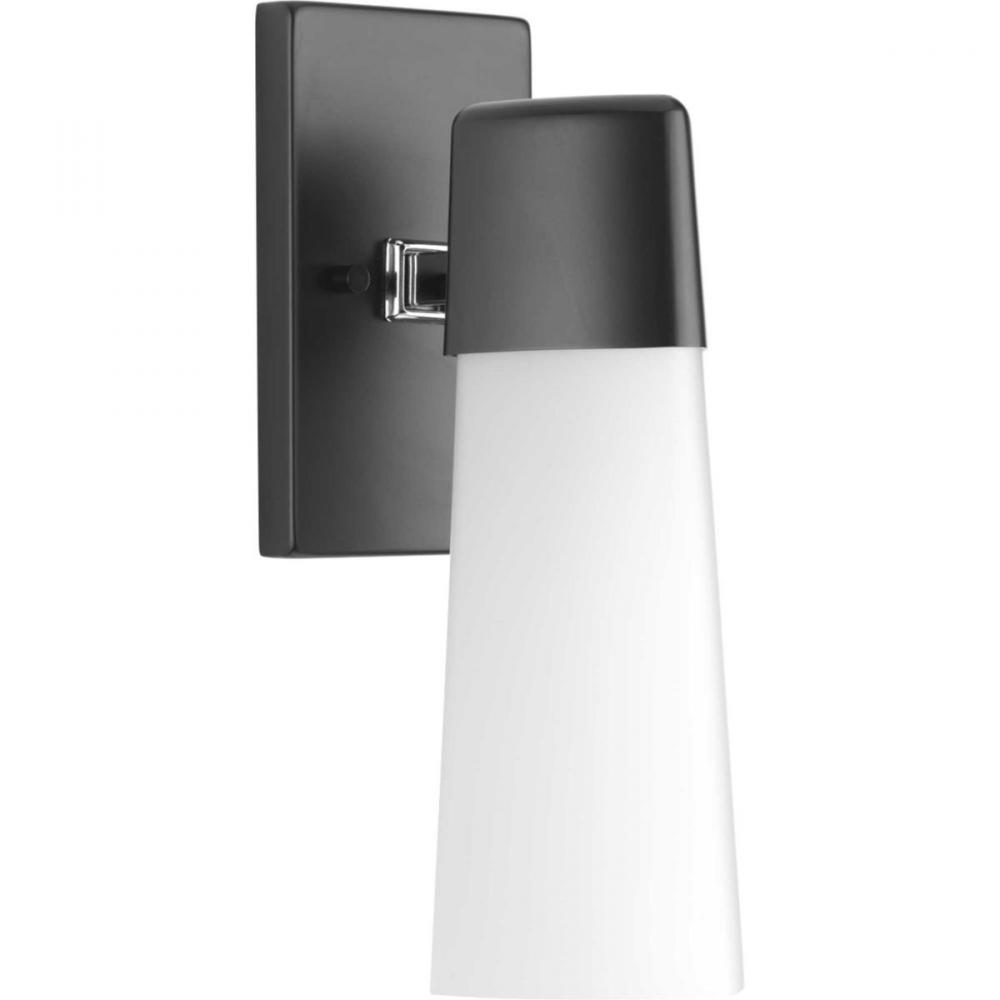 Ideal for a bathroom;Perfect for modern and transitional style settings;Classic matte black finish;Elegant etched opal glass shade;Mount the light fixture facing up or down;Use 1 medium base bulb that is sold separately (100 W max - LED/CFL/incandescent);c