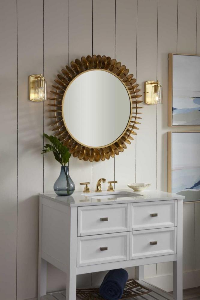 bathroom light fixtures;bathroom lights over mirror;bathroom lighting fixtures over mirror;traditional light fixtures;traditional lighting fixtures;modern light fixture;modern lighting fixtures;satin brass light fixture;satin brass lighting;satin brass bat