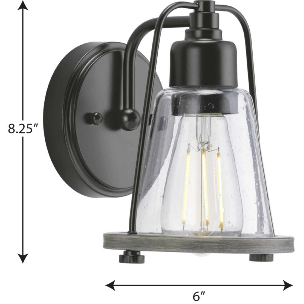 Application: Create a relaxing seaside haven with the Conway Collection 1-Light Matte Black Clear Seeded Farmhouse Bath Vanity Light ideal for any entryway, hallway, foyer, bedroom, sitting room, living room, or bathroom.;Style: Perfect for farmhouse and c