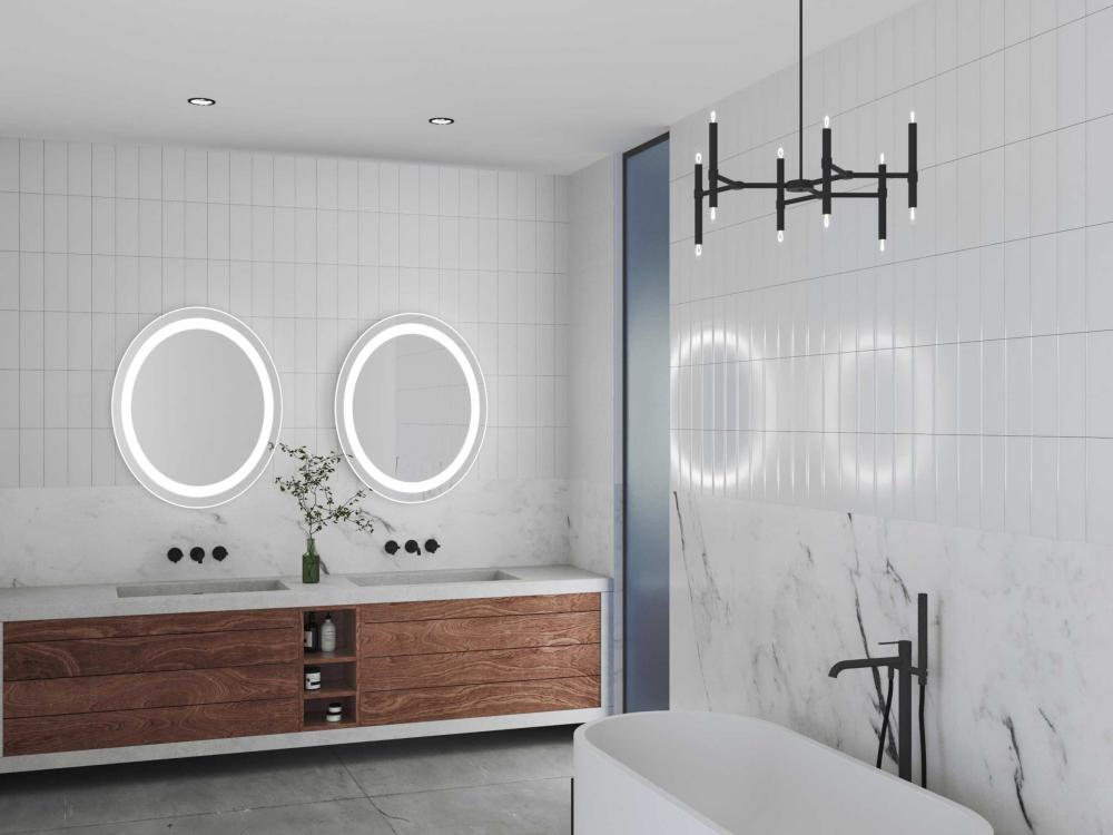 This oval illuminated mirror is a luxe addition to the modern residential or commercial bathrooms