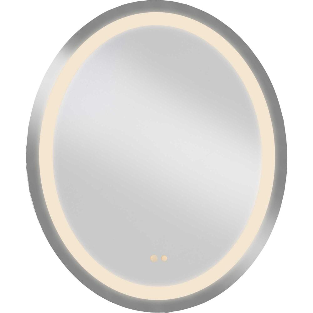 A luxe addition to the modern bath, the Captarent Oval 30-in x 36-in Illuminated Mirror brings a luminous glow to the room. Frosted LED light highlights the geometric profile of the mirror while providing a balanced wash of LED illumination. The dimmable light source is 3CCT selectable, with a choice 3000K, 4000K, and 5000K color temperature all at your fingertips with push-button touch control technology to ensure uniform and flattering illumination for your space. The mirror's versatile front-lit design is ideal for modern commercial or residential bathrooms. The mirror is packed in sustainable, honeycomb cardboard, minimizing waste and supporting eco-conscious living. It holds certifications including cETLus damp location rating, making it suitable for areas with moisture exposure. It also complies with California Title 24, JA8, and ADA standards, ensuring safety, energy efficiency, and accessibility. Progress Lighting products are designed for exceptional quality, reliability, and functionality.