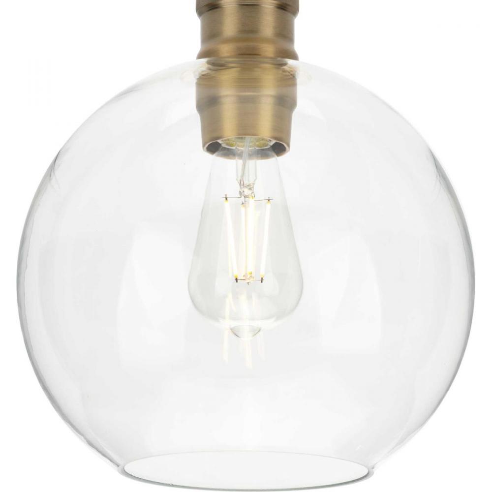 Ideal for a bathroom;Perfect for farmhouse, transitional, and coastal style settings;Golden vintage brass finish;Round clear glass shade;Includes installation instructions and mounting hardware;Use 1 medium base base bulb that is sold separately (60 W max