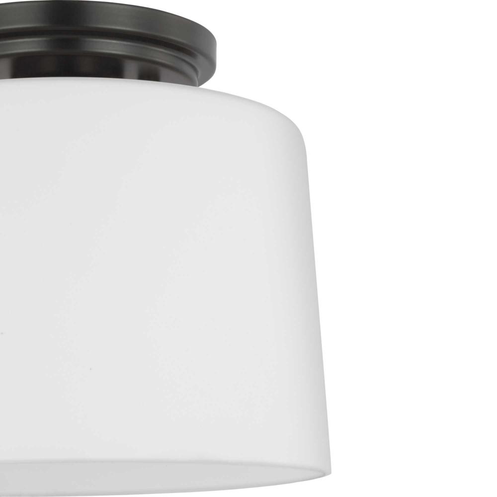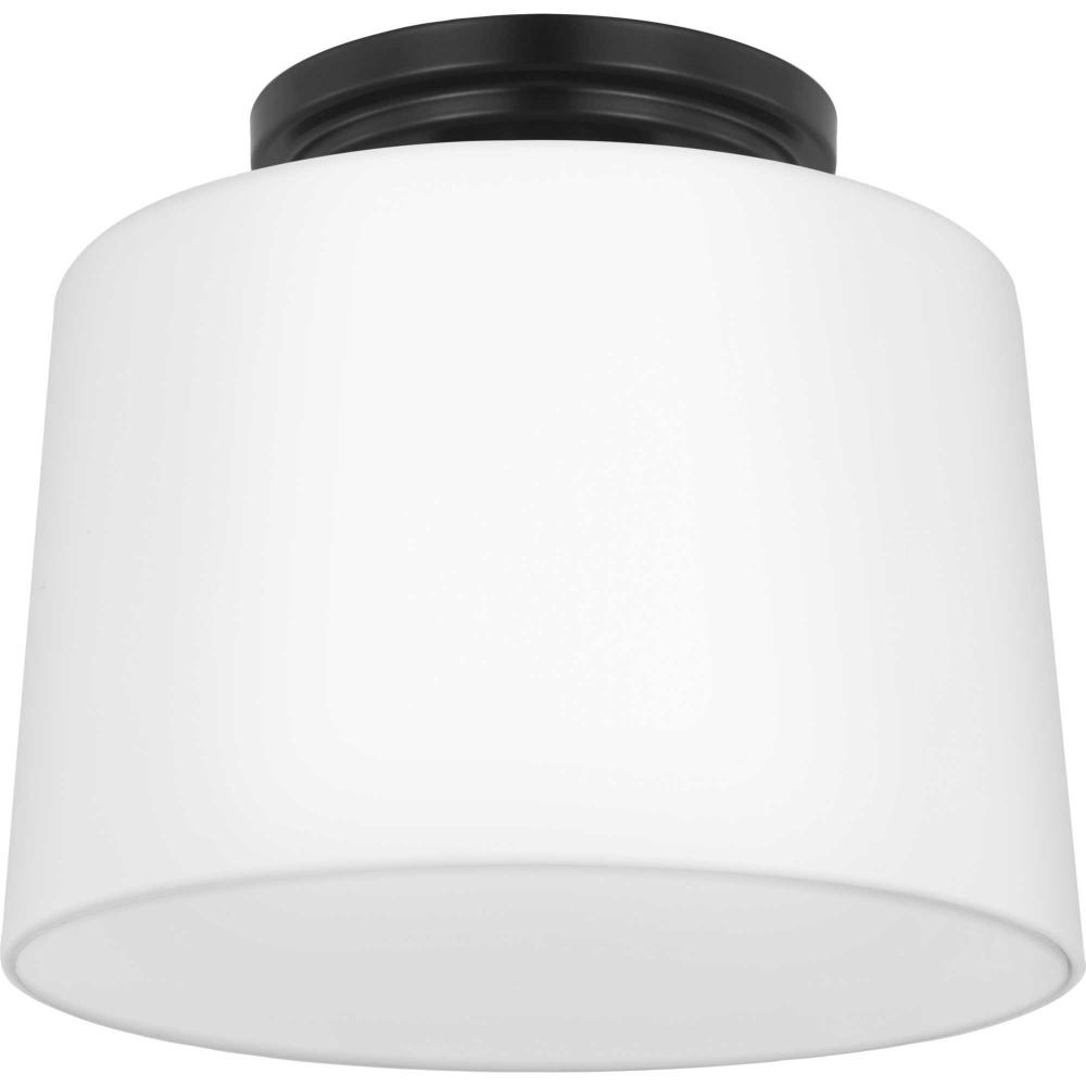 Fundamentally modern but with a traditional twist, the Adley flush mount light features a sleek light base and circular ceiling plate coated in a contemporary matte black finish. The light source is surrounded by an etched opal glass shade for gorgeous illumination. This ceiling light will find a home in any new traditional or transitional style setting.
