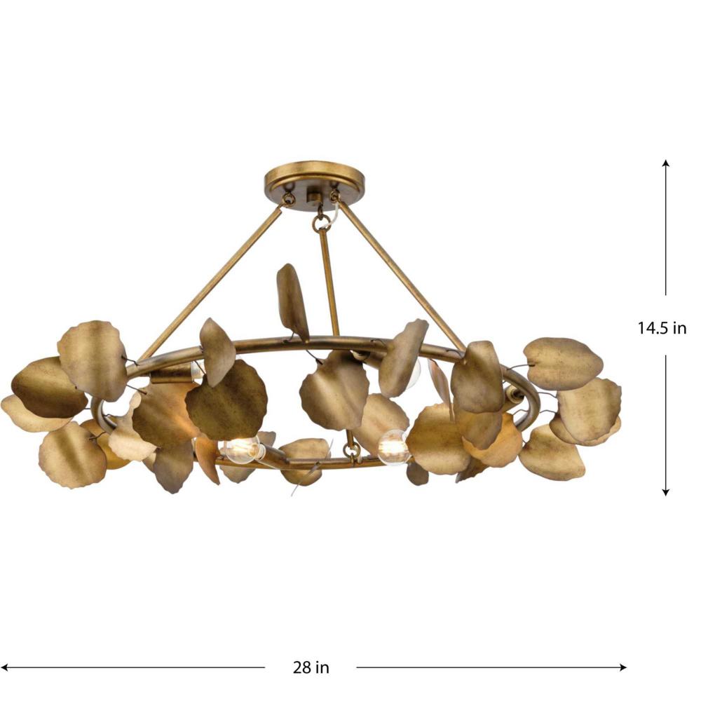 The Laurel Collection seamlessly blends natural beauty with elegant design. Handcrafted, gently curving leaves are finished in a richly blended patina that adds a touch of timeless sophistication.This fixture is part of the Progress Lighting Design Series, a lighting collection offering fashionable styles and affordable luxury lighting for the home.