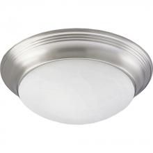 Two-light 14 inch close-to-ceiling fixture with etched alabaster style glass bowl and White finish. Twist on glass for easy relamping. This fixture is perfect for bedrooms, closets, pantries, hallways and many other areas of the home. The simple styling coordinates with many different looks throughout the home.