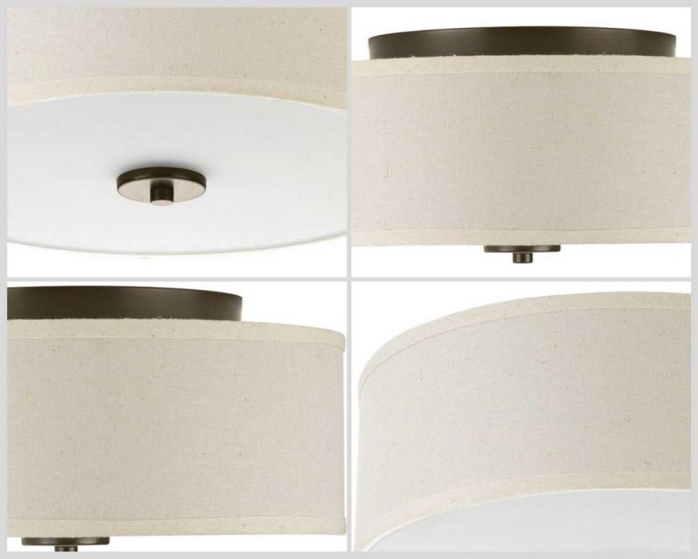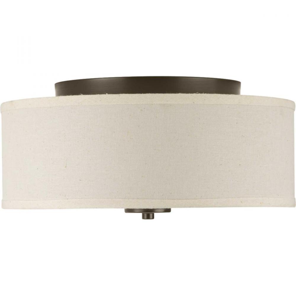 Harkening back to a simpler time, the Inspire Collection flush mount ceiling light freshens traditional forms with clean lines. The two-light antique bronze flush mount features an etched glass diffuser with an off-white linen shade. This fixture is suitable for a variety of design styles, including transitional, traditional and farmhouse and the simple design is a perfect for a variety of locations throughout the home.