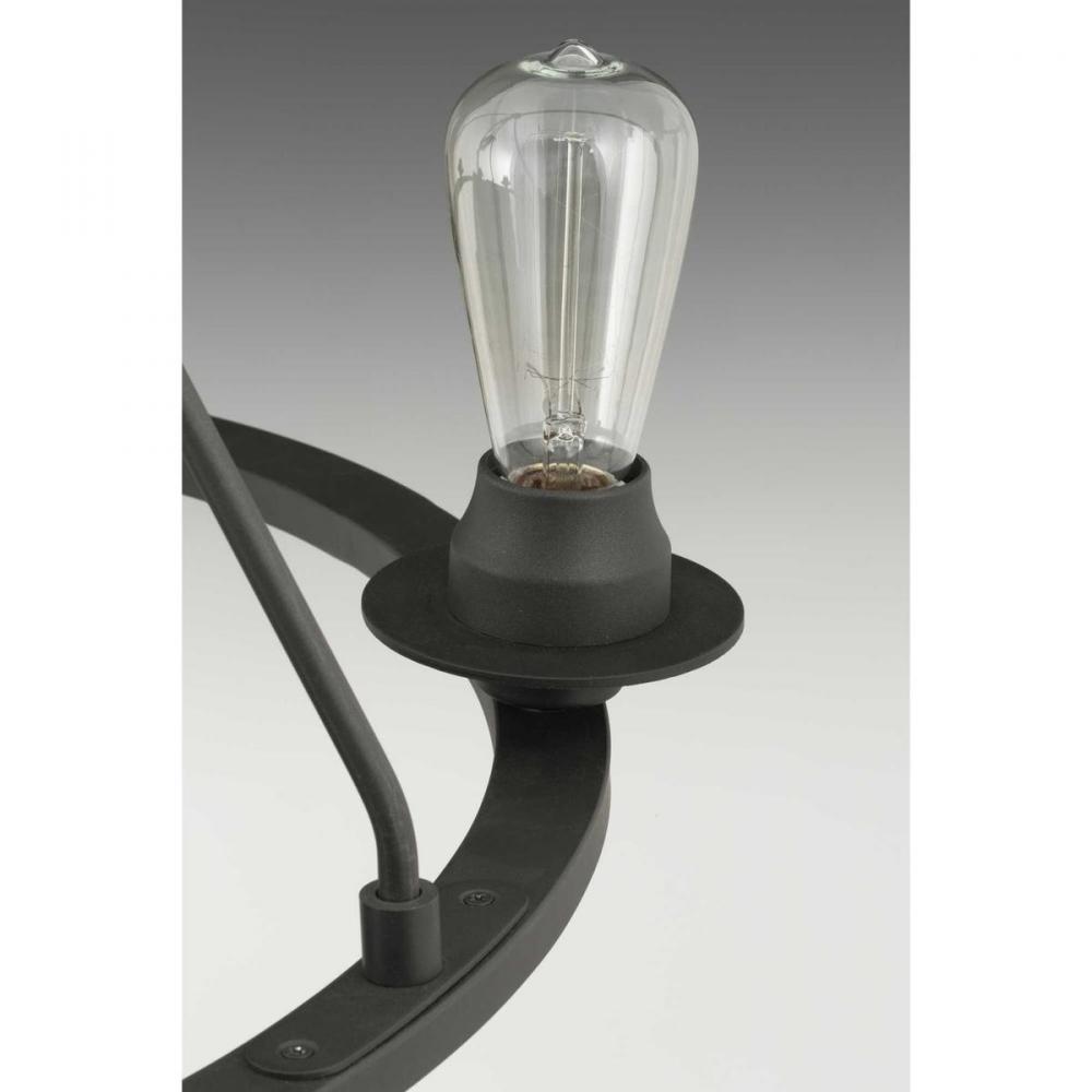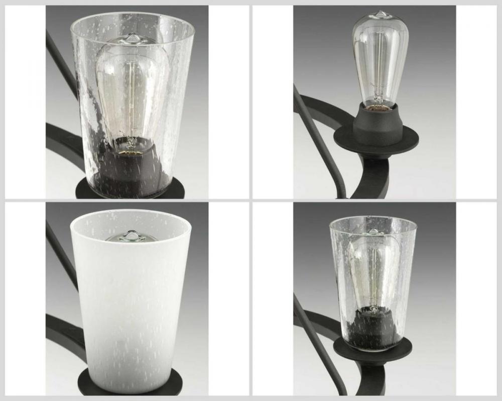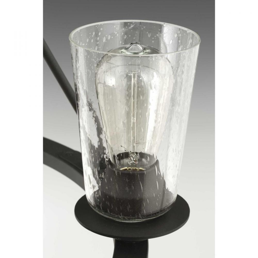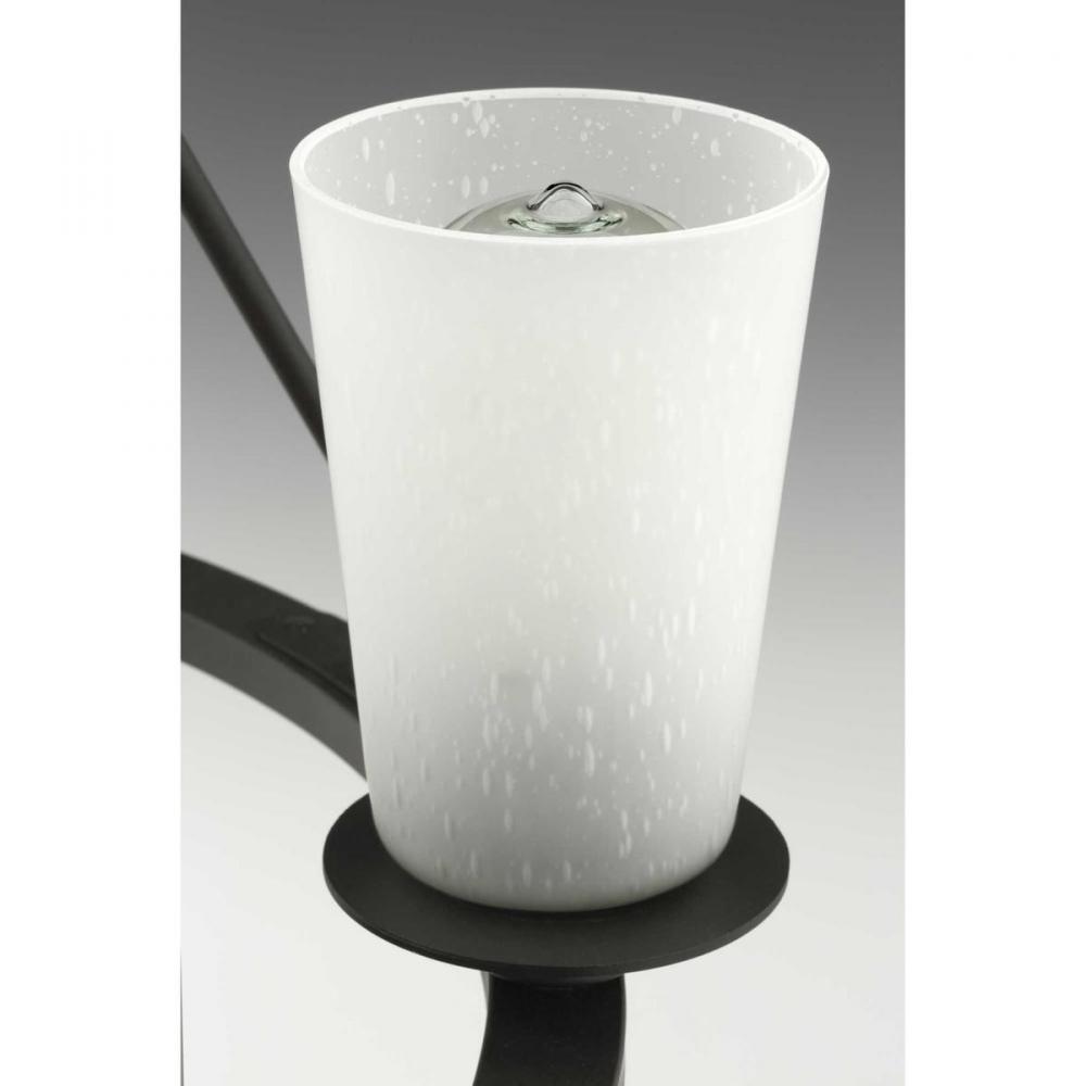 Graphite finish.;A uniquely vintage modern feel.;Delicate details with a warm finish.;Makes a great statement piece for a variety of interiors.;Glass accessory shades in clear (P860003-001) or frosted (P860002-001) seeded finishes are available.