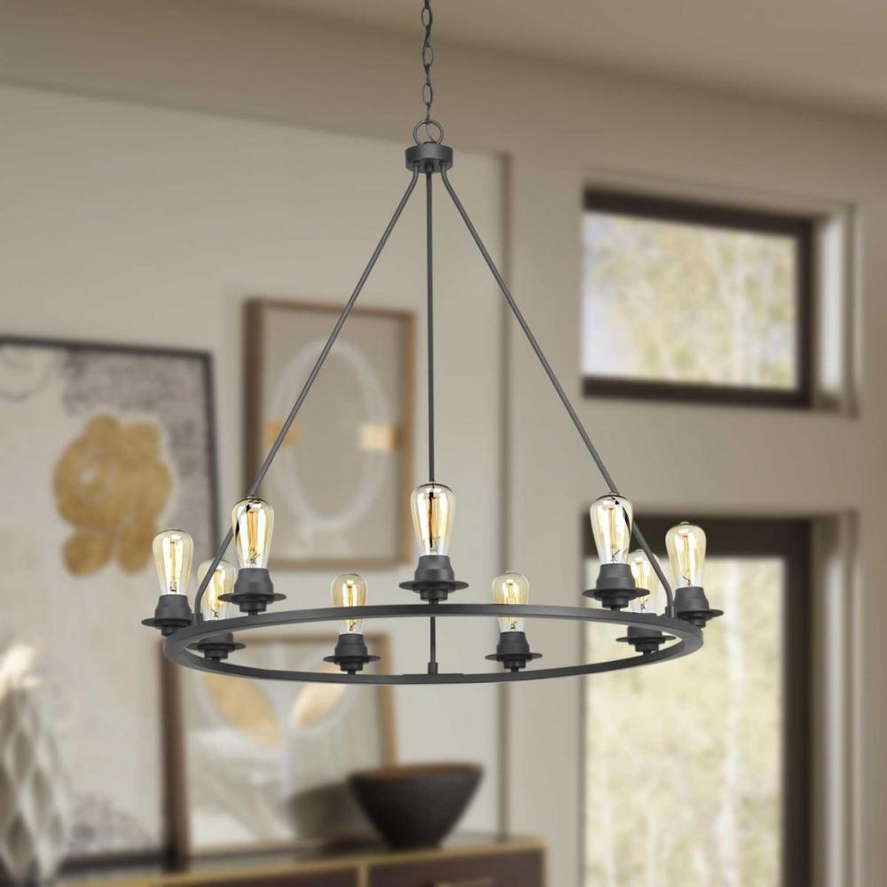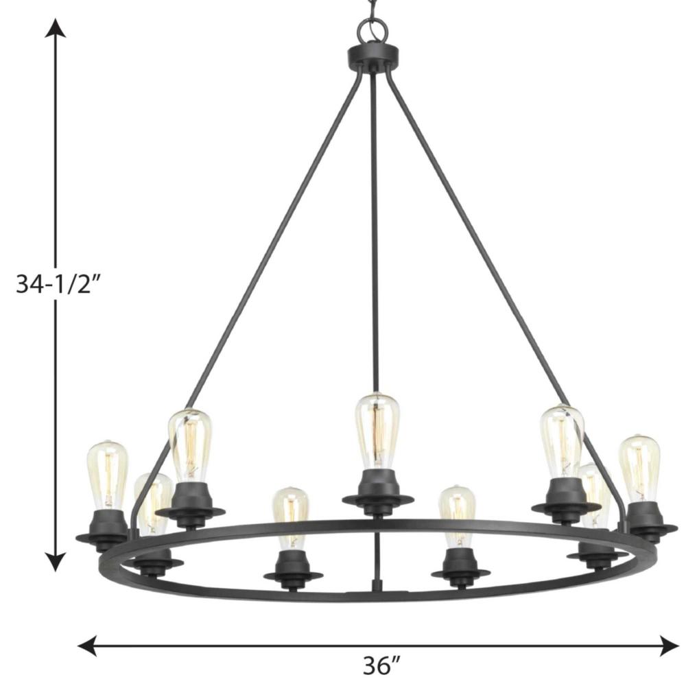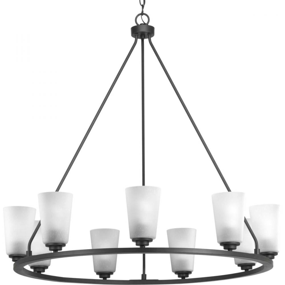 A new category of vintage modern fixtures takes center stage with this nine-light chandelier from one of our Design Series collections. Delicate details in a Graphite finish, create statement making focal pieces for a variety of interiors. Debut provides a fitting stage to feature nostalgic, vintage lamps. Glass accessory shades available in clear or frosted seeded finishes.