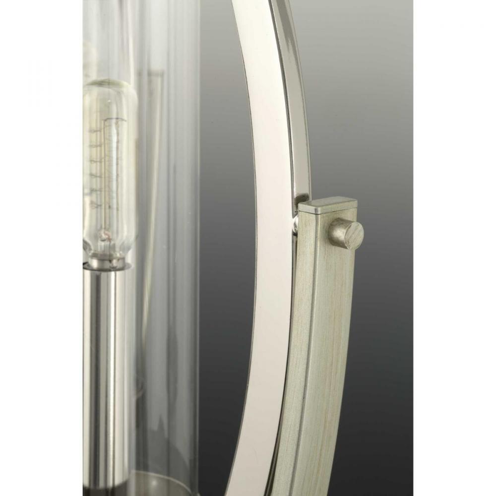 Mixed metal finishes highlight popular dual toned home decor accents;Updated design features an oversized oval form with candelabra lights;Polished Nickel with silver ridge accents;Uses five 60-watt max. candelabra style bulbs including LED equivalent (sol