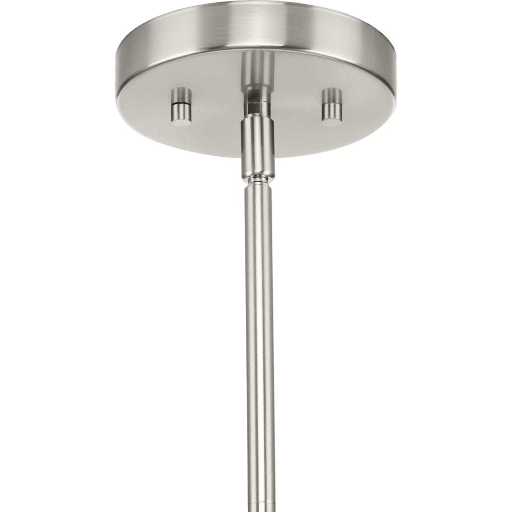 The fixture is coated with a subtle brushed nickel finish, enhancing its modern design