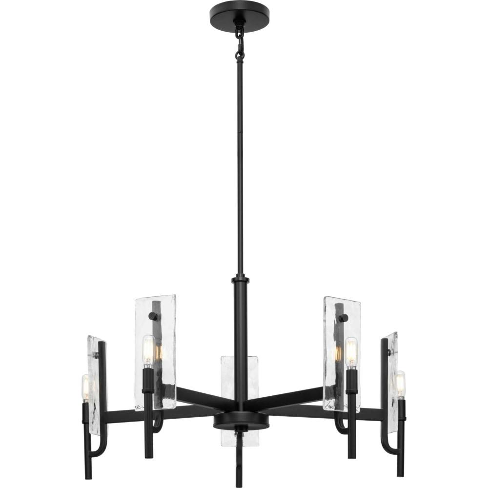 Indulge your artistic sensibility with luxurious lighting from the Rivera Collection. Softly filtered illumination through an icy display creates an otherworldly effect. Linear segments in rich, deep black tones frame billets of handcrafted, clear textured glass in a modern craftsman-inspired design.This fixture is part of the Progress Lighting Design Series, a lighting collection offering fashionable styles and affordable luxury lighting for the home.