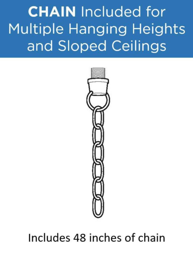 Includes 48 in. of chain for a variety of ceiling heights and can be used on a sloped ceiling
