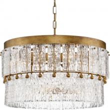 Add glamour to your home with the elegant Chevall Collection. Layers of distinctive artisanal glass encircle a richly burnished, Gilded Silver frame, creating a chandelier that offers a luxurious lighting experience. Glimmering illumination creates a sparkling ambiance that fills the room. This fixture is part of the Progress Lighting Design Series, a lighting collection offering fashionable styles and affordable luxury lighting for the home.