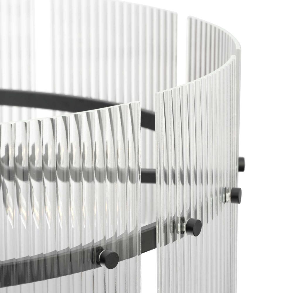 Ridged glass cylinders diffuse the light, casting a soft glow