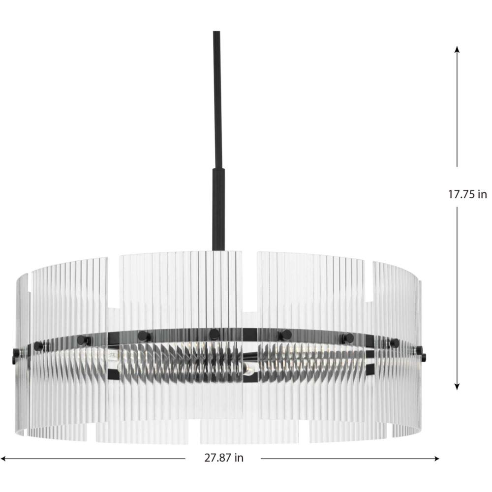 The Seville Collection ensconces light within a translucent design. A series of finely ridged architectural glass elements envelop a central frame finished in Matte Black to diffuse an ambient glow throughout the room. This fixture is part of the Progress Lighting Design Series, a lighting collection offering fashionable styles and luxury lighting for the home.