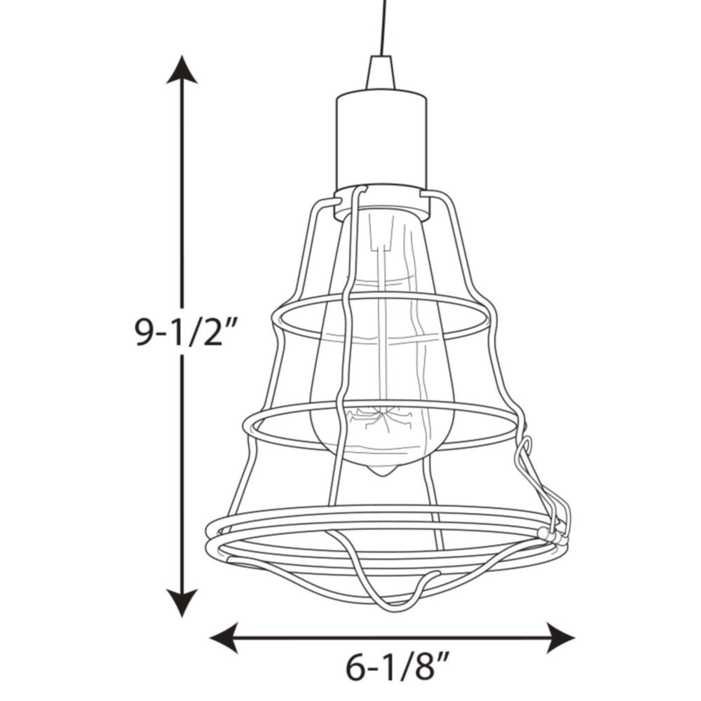 Inspired by industrial elements, Gauge one-light mini-pendant features an open cage design that's both functional and aesthetically appealing. Frame is comprised of a Graphite finished wire frame with Brushed Nickel accents. Hinged door provides easy access to change lamp.