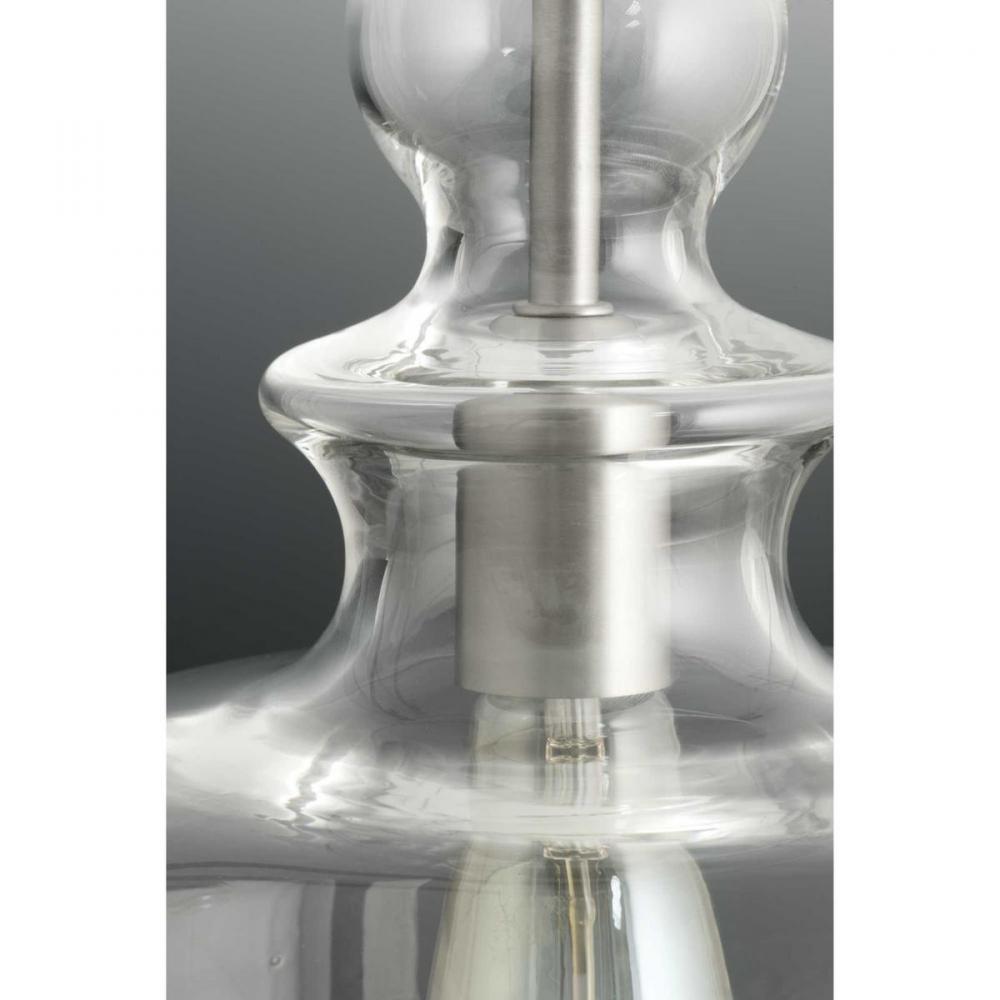 Inspired by the stacked modern elements of items found in Parisian boutiques, Staunton's chess piece bell silhouette offers a signature focal point. A hint of Brushed Nickel peeks through the clear glass. The multiple shapes and glass options offers the ability to mix and match for customized look.