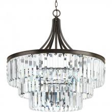Elements that sparkle create an instant statement within the home.;Three layers of elongated prism drops offer a livable luxury feel.;Architecturally- styled frame in Silver Ridge finish.;Part of the Design Series Collections offering high style and design
