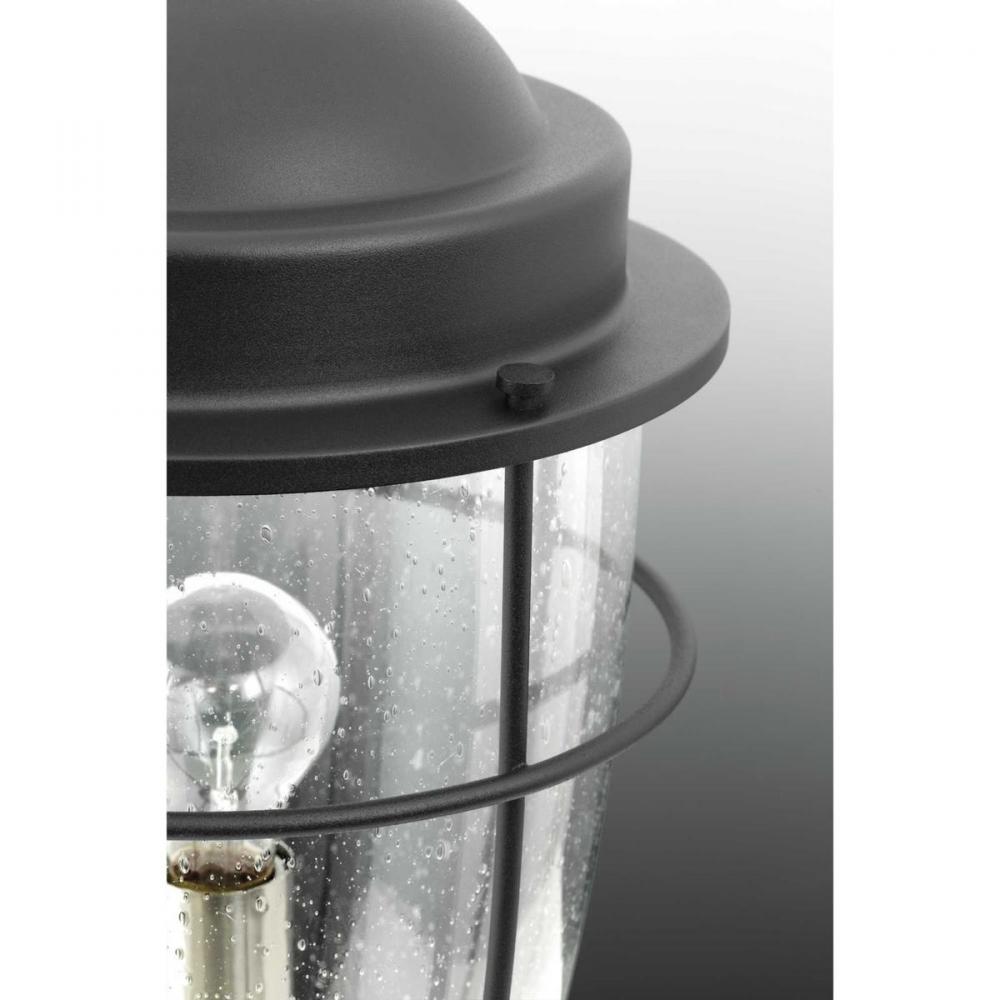 A nautical-inspired collection;Ideal for a variety of exteriors, including Coastal, Transitional and Urban Industrial settings;Textured Black finish with clear seeded glass feature a hint of brushed nickel on the interior;Post lantern uses one 100 watt max