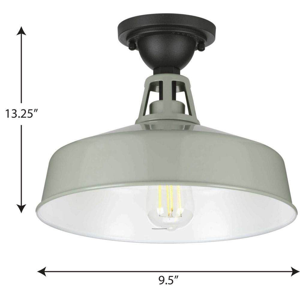 This fun take on the traditional warehouse shade provides excellent task lighting. The generous metal shade is coated in a gorgeous pistachio finish ready to direct a helpful glow. An industrial-style ceiling plate anchors the light fixture in place and adds a touch of urban flair to farmhouse and transitional settings. Dark Sky Friendly.