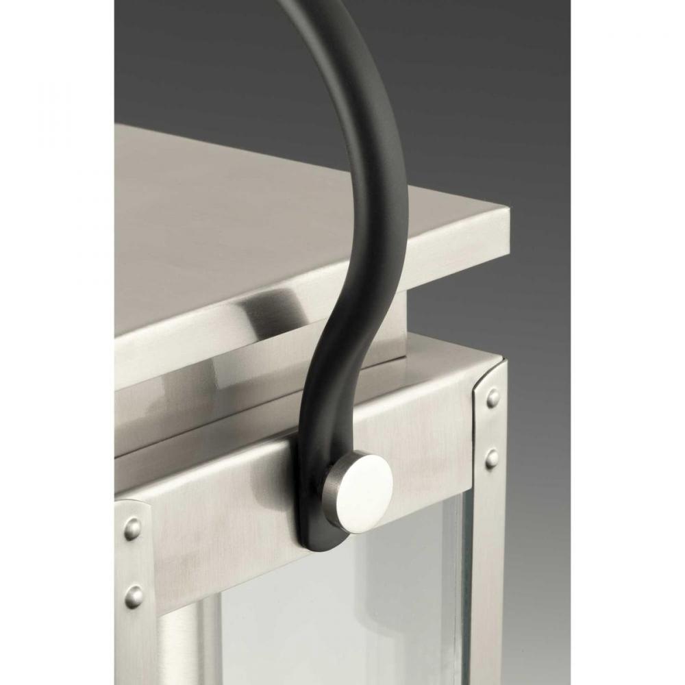 Stainless Steel finish.;Gas lantern inspired.;Clear flat glass panels.;Mechanical details provide character.;Open bottom design for easy relamping.