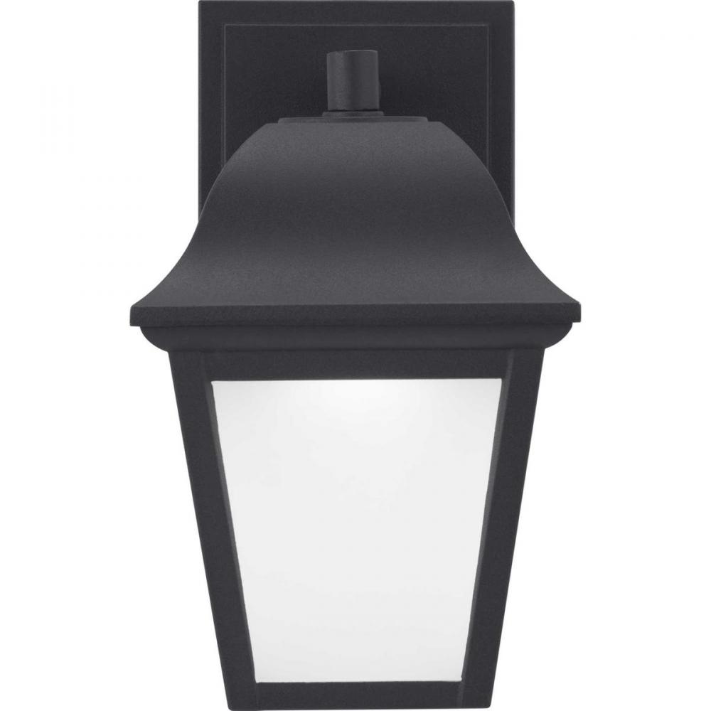 This energy efficient LED wall lantern features a Black finish on a die-cast aluminum frame. This fixture includes integrated LED technology with no bulbs to replace. The frosted glass panels have a warm quality that adds to the lantern's traditional design.