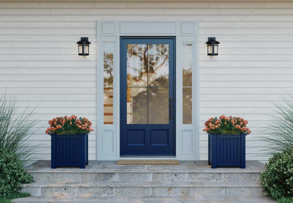 Medium wall lantern with etched white linen glass. Includes dark sky shield for full cut-off illumination or remove for a traditional lighting effect.