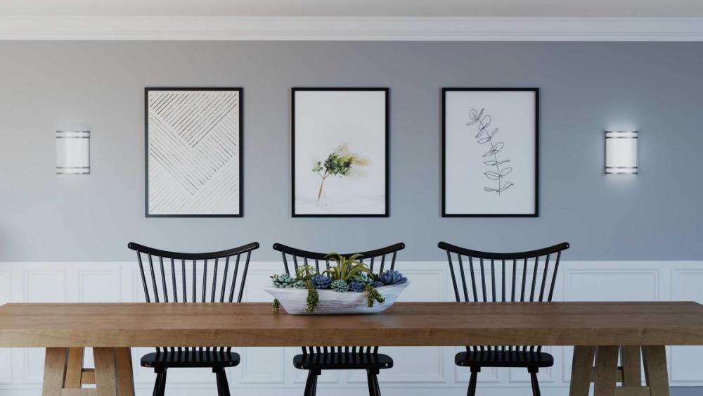 A contemporary white acrylic LED wall sconce that features a 120V alternating current (AC) source which eliminates the need for a traditional LED driver.
