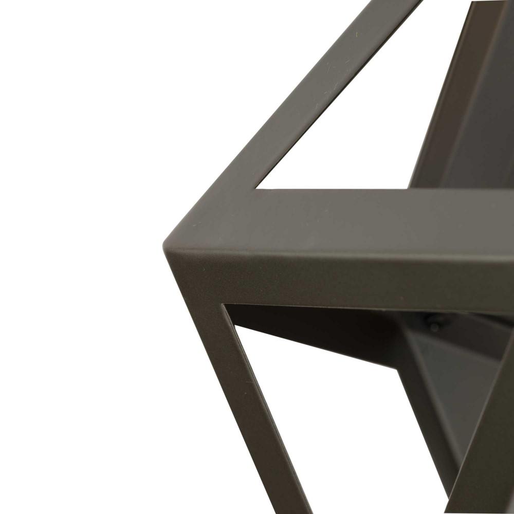The flush mount features painted bronze steel blending together in an esoteric conjunction, creating a prominent geometrical surround