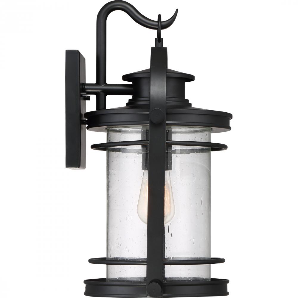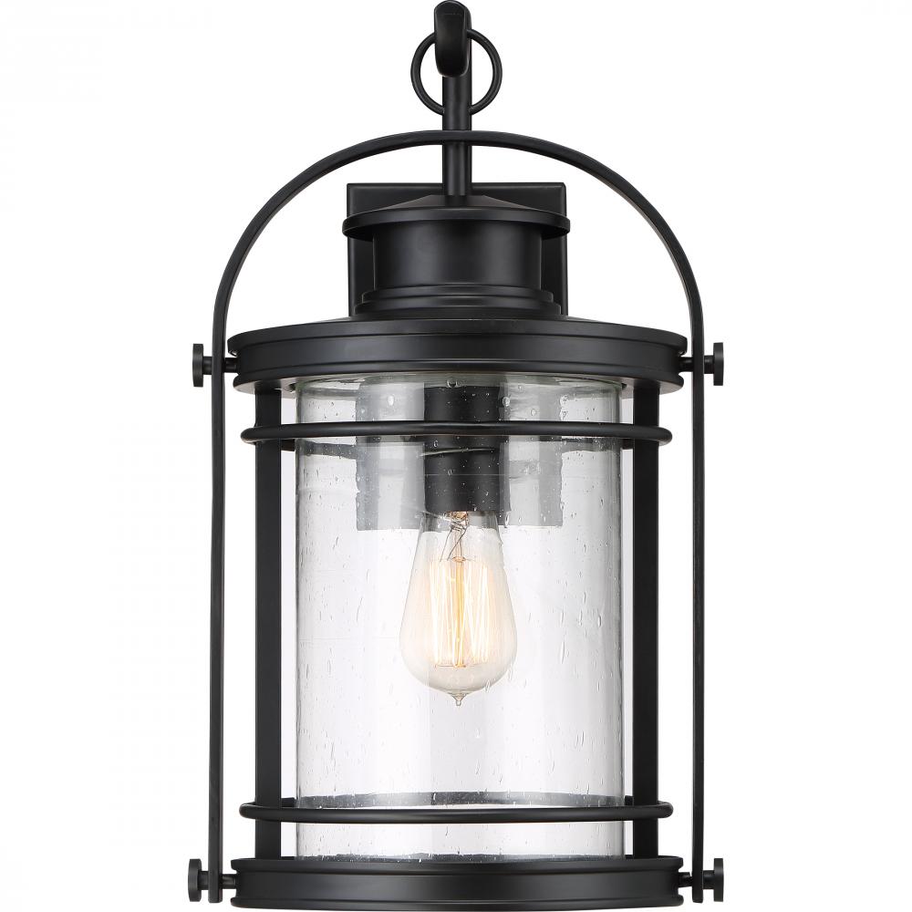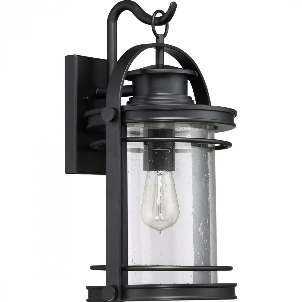 The Booker Outdoor Collection is a fresh and charming style. The design features a curved arm on the backplate “holding” the lantern and the finish is an inky Mystic Black. All of the details from the knobs, round trim and light seedy glass come toge